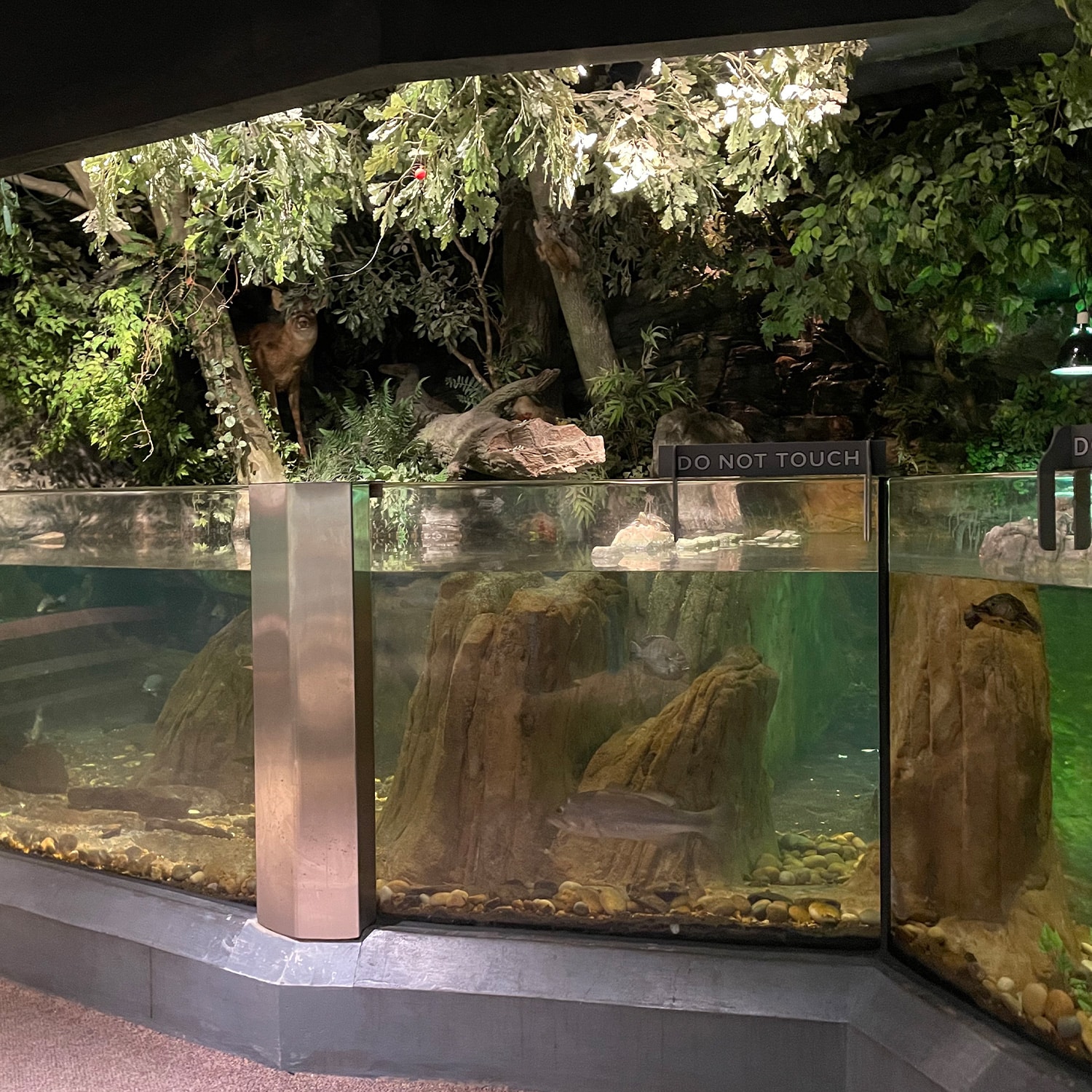 The Lake Tank contains fish typically found in an Alabama Reservoir habitat. Many lakes in Alabama are actually impounded reservoirs, which are rivers that have been dammed to create large flood pools. You can also see our Cypress Forest tank here, recreating river delta habitats in Southern Alabama.